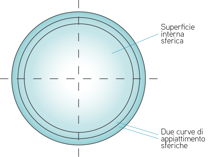 LENTE A CONTATTO RIGIDA GAS PERMEABILE CON CURVA BASE SFERICA E CURVA PERIFERICA ASFERICA
