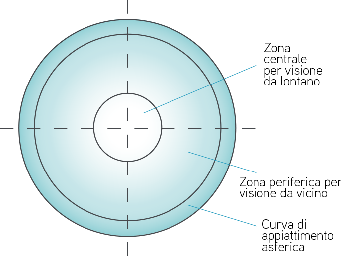 LENTE A CONTATTO RIGIDA GAS PERMEABILE MULTIFOCALE A VISIONE SIMULTANEA